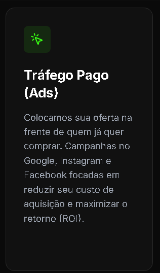 Somos especialistas em transformar investimento em faturamento. Se você busca um parceiro estratégico, e não apenas um "executor de posts", você está no lugar certo.